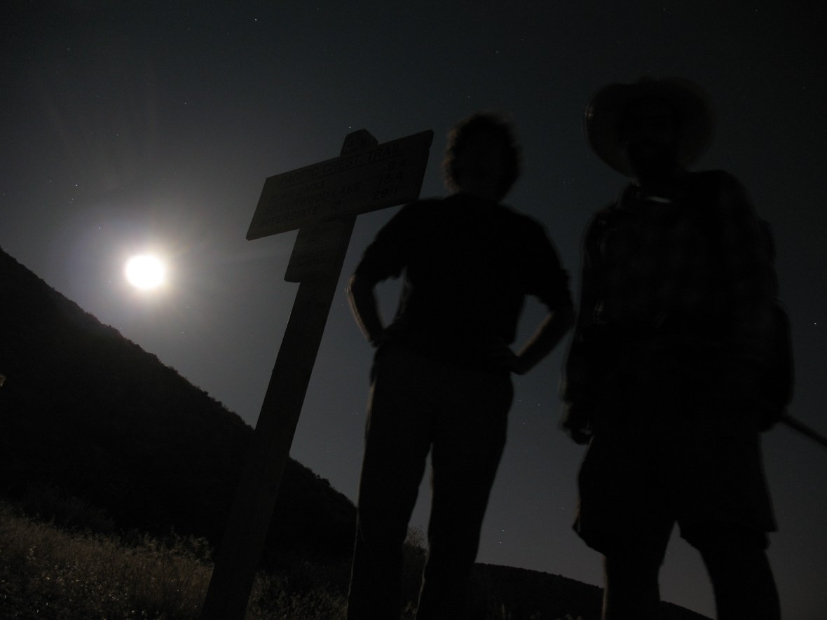 A blue moon lit the sky. I remembered its sister hanging over the San Jacintos four weeks ago. Jonathan walked with me to take a picture next to a trail sign and we gave each other a hug. It felt like the last of a week of goodbyes. An era in my life had ended.