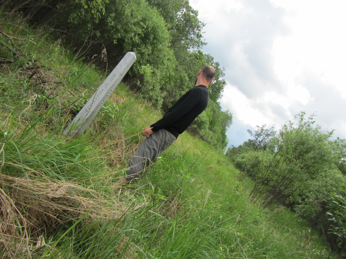 I thought I’d missed the border in the thickets of brush and high grass, then I turned and the world opened up in front of me. Light spilled in from the clean line cut through the trees. In the middle, a silver surveyor’s monument stood alone and forgotten.