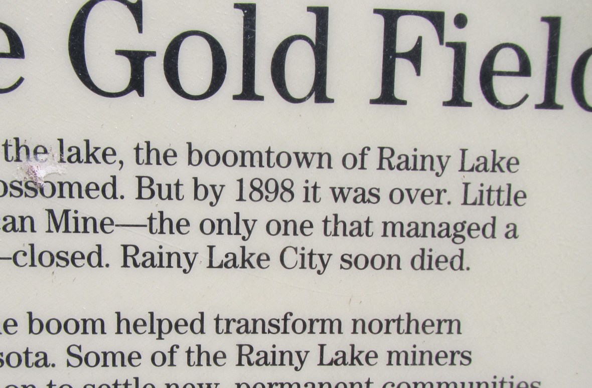 When the gold slowed then stopped, so did the town. People moved some of the buildings to what is now International Falls, the rest rotted away and disappeared into the forest. There’s hardly anything left, just a few old shafts and some equipment left to rust when the mine closed, but it’s there if you look. Just give it five minutes.