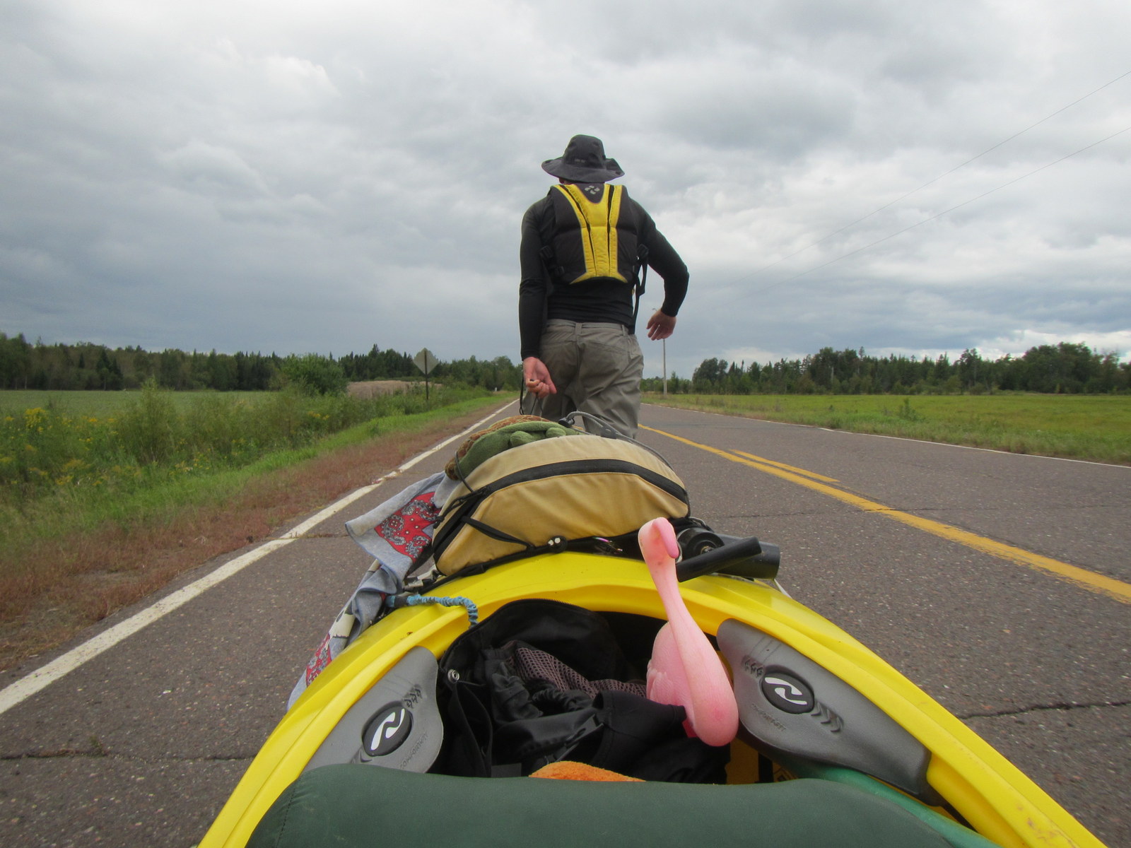 It was easy then, rolling the boat behind me down an abandoned road, but the weight wore on me bit by bit. By the time I reached Cloquet, my hands felt like they would rip off my forearms, blisters covered my fingers from pulling the boat’s grab loop and miles of pavement left my feet battered.