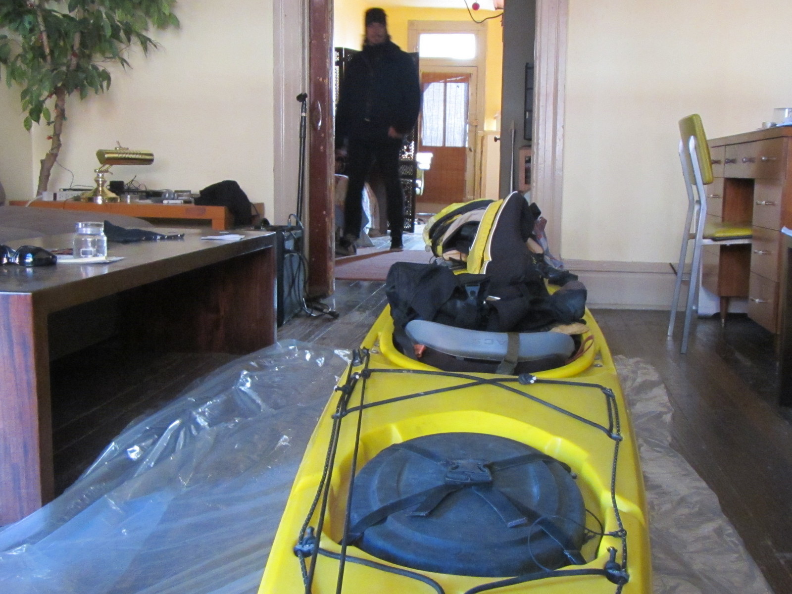 She picked me up from the river yesterday in an old moving van with her neighbor Ralph. The boat hung off the back and looked half-swallowed by the van’s rolling door, but Ralph drove slow and the ropes held until we slid the Looksha out. JK helped me walk her into the long apartment and set her down on the wooden floor.