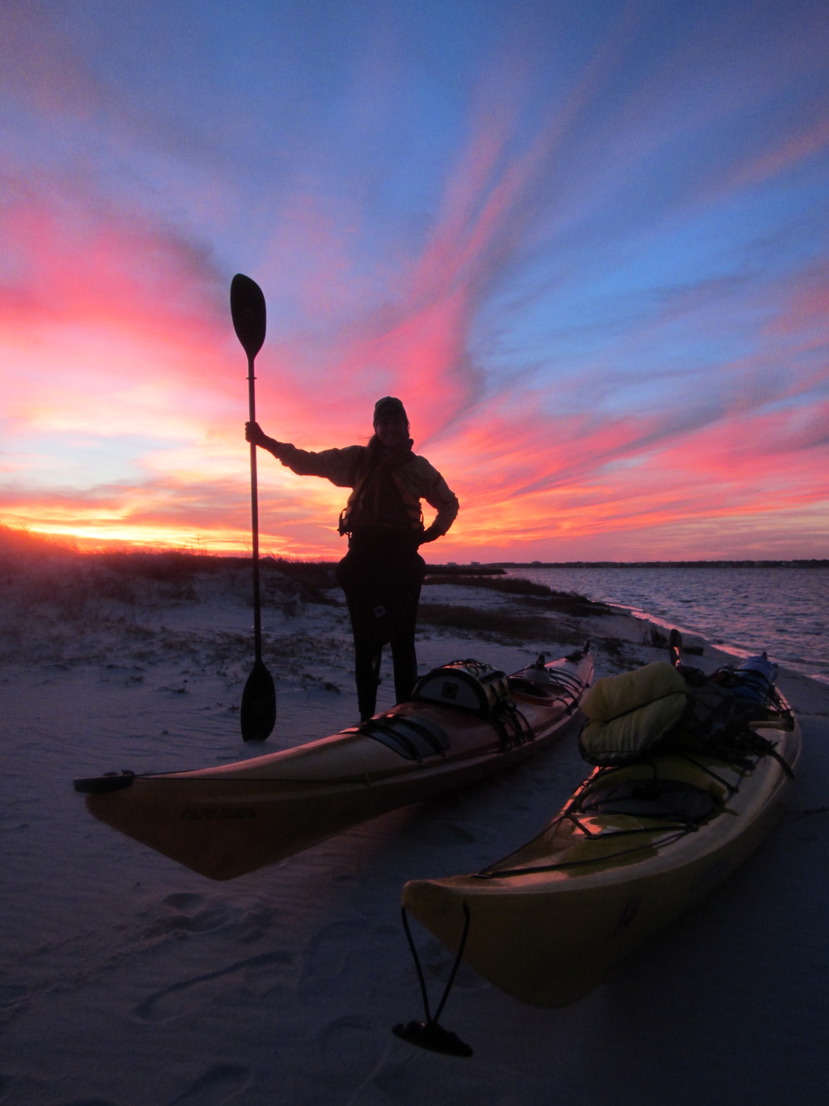 We listened to the weather radio because we had to deal with whatever came. We found perfect beaches because we slept on the sand. We woke up to look at the waves. We watched sunsets paint the sky and stars fall and burn. We read the ingredients to instant mashed potatoes and we ate them anyway and they tasted delicious because we had been out for three nights. We divided up our chocolate bars and parceled them out one by one. We crossed bays and found calm water. We jumped out of sleeping bags to make breakfast in the cold air. We set up a tent and waited for a storm. We listened for rain. We packed and unpacked boats. We spent Christmas with Captain Lori and Mike and we marveled at how delicious pecan pie is. We hid from the wind. We explored abandoned forts and watched dolphins play. We floated in the Santa Rosa Sound with a broken rudder and waited to dash for shore.