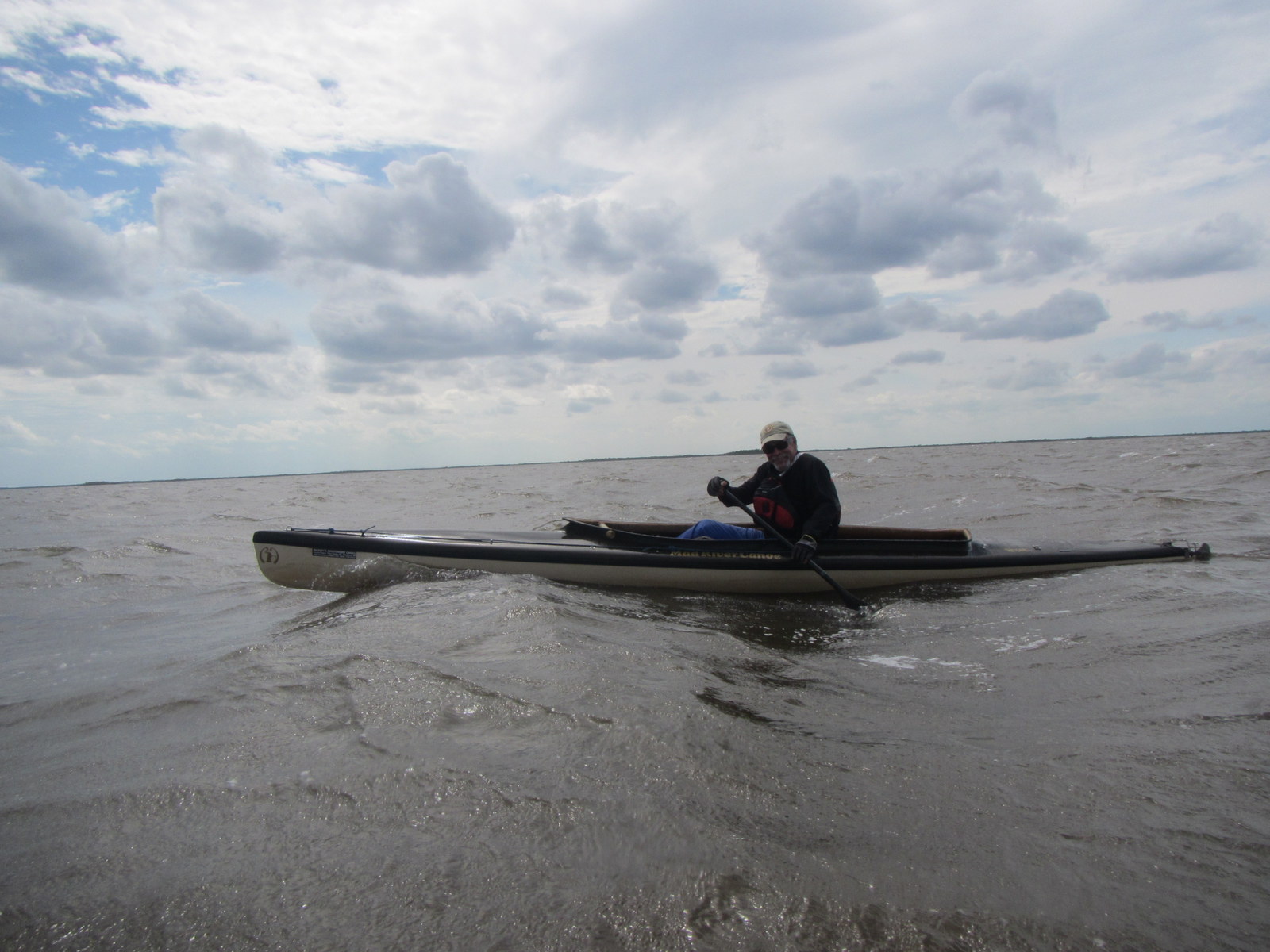“There are four big crossings,” John says as we leap out into the open of Whitewater Bay and the waves slip behind us and shove.