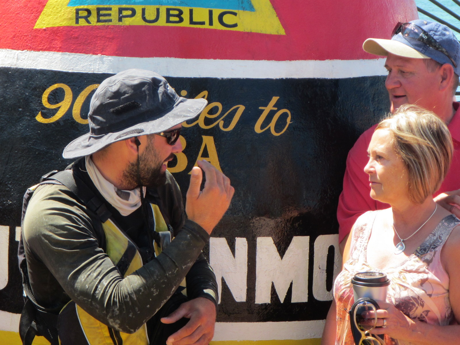 The line is thirty people long at the Southernmost Point. It’s an old piece of metal painted like a buoy, but it says Southernmost Point and 90 Miles to Cuba so it make for a good picture even if it’s a lie. I move to the back of the crowd, dragging the Looksha behind me.