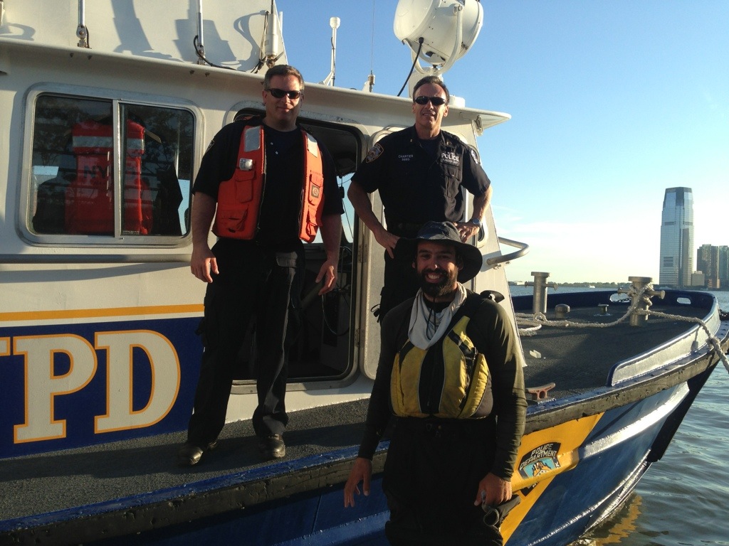“People were calling them because I was taking so many pictures and paddled under the ferry terminal’s walkway,” I said. “But who doesn’t take pictures after paddling to New York and there weren’t any signs telling me to stay away from the walkway. That’s where the current is the lightest.”