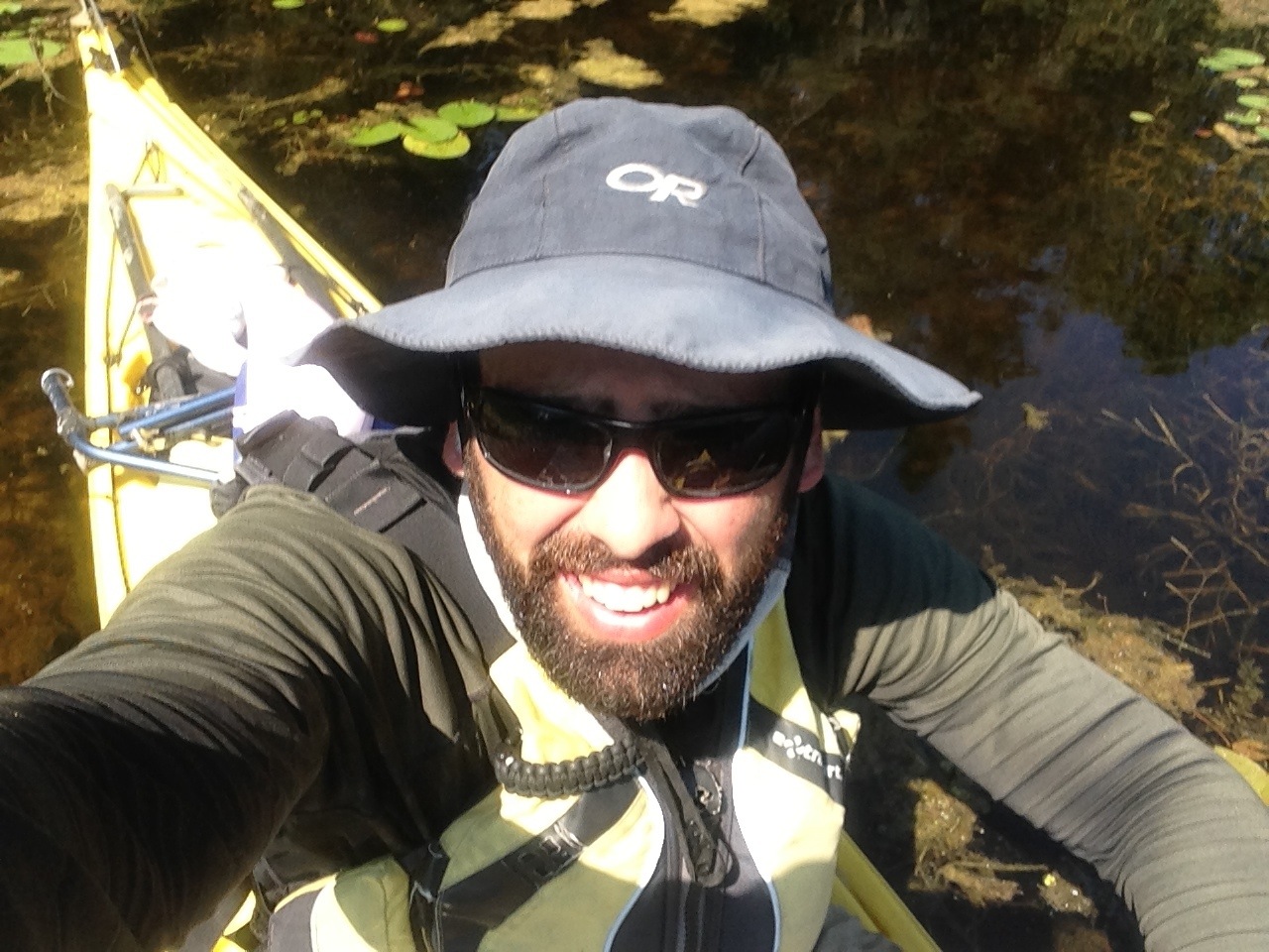 Green algae and lily pads swirl around my knees. I fumble for footing in the mud and slick logs then yank the boat down the bank. It lurches forward, heavy and loaded, settling into the water next to me.