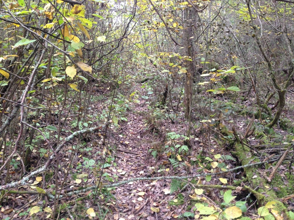 I bent low, crouching under branches, following the path like a bloodhound, tracing it for a few hundred yards until I was certain it shot straight through the low gap on the hill toward a small, unnamed lake a quarter mile away. All doubt faded when I saw an old log, rotted to mush, covered in moss, but sawed off at one end with a clean, straight cut.
