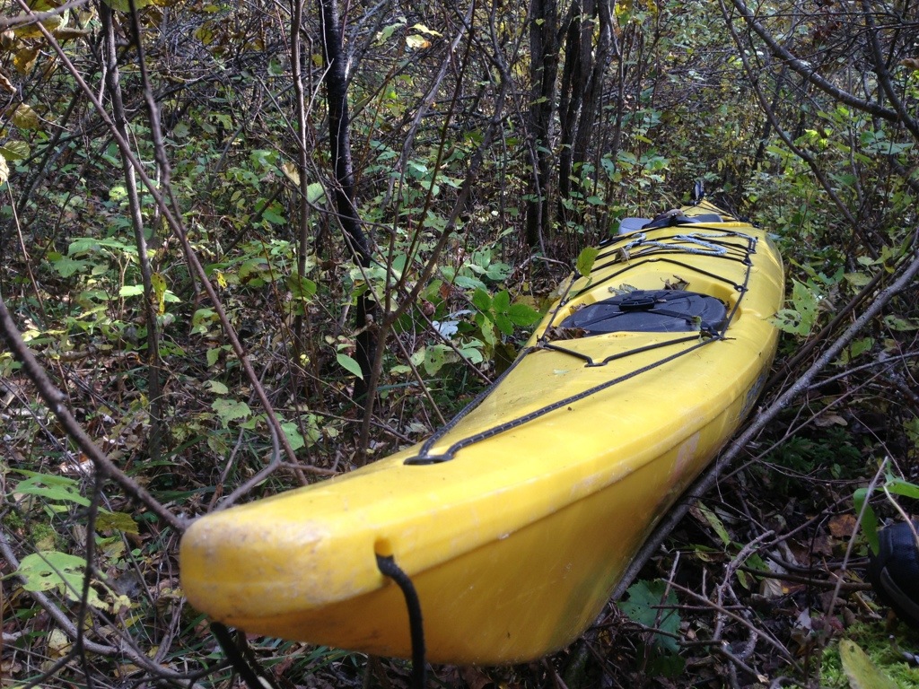 It doesn’t sound like much, fifteen hundred feet. It sounds like a city block, like five minutes on a sidewalk, but I’d take thirty miles of sidewalk over fifteen hundred feet of north woods with a kayak. March me from one side of San Francisco to the other and back five times, I’d only smile and say I got off easy.