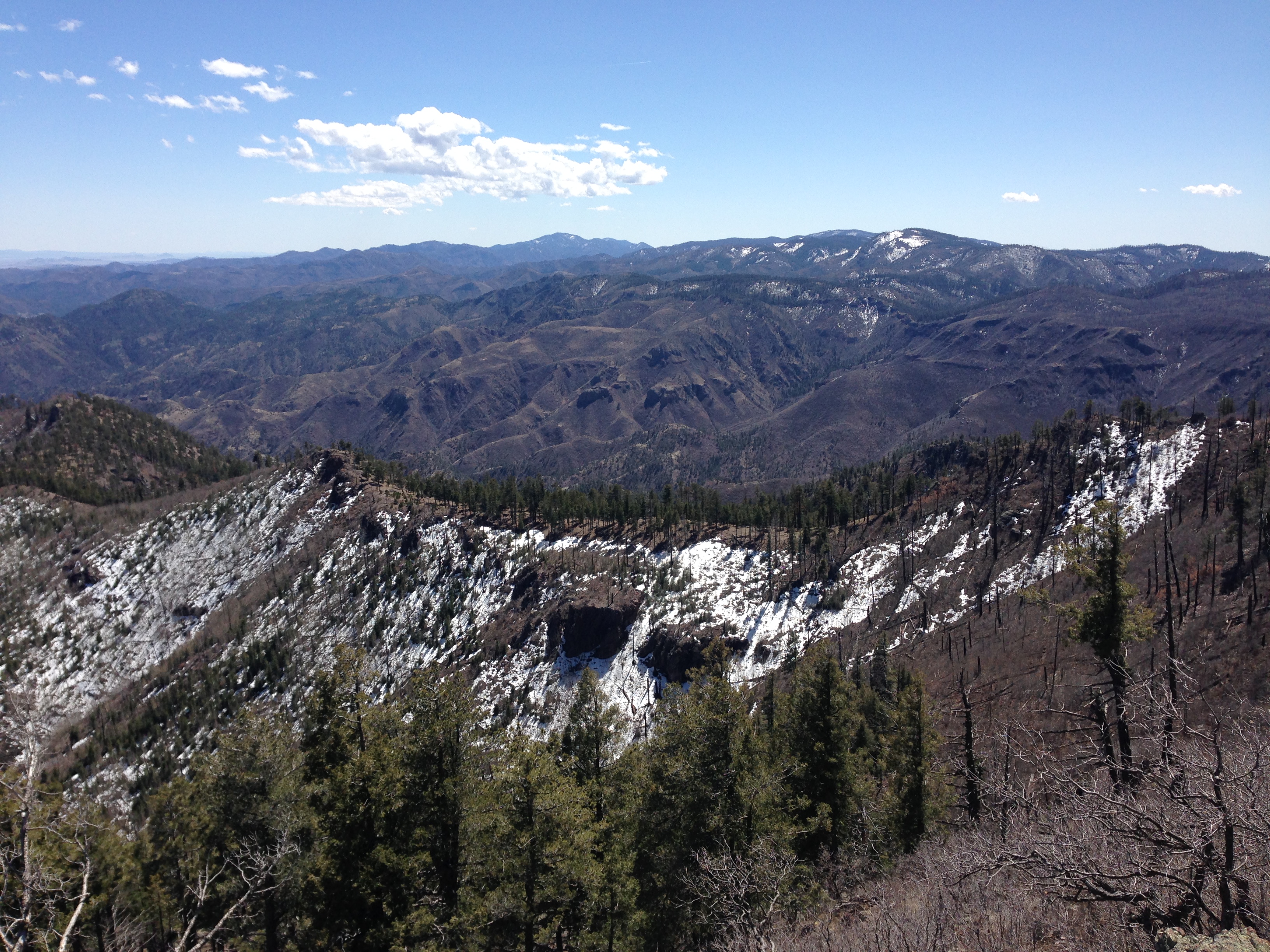 I splashed back and forth through Diamond Creek, rising up its long canyon toward the Black Range and the Continental Divide. I reached the crest of mountains at a low pass and turned north, weaving along the peaks, picking my way forward through patches of snow and dirt, light and shadow. The “Continental Divide Trail” a sign read. I stopped and stared at the familiar emblem. The “C” and “D” split by an arrow-shaped “T” that always pointed the way forward.