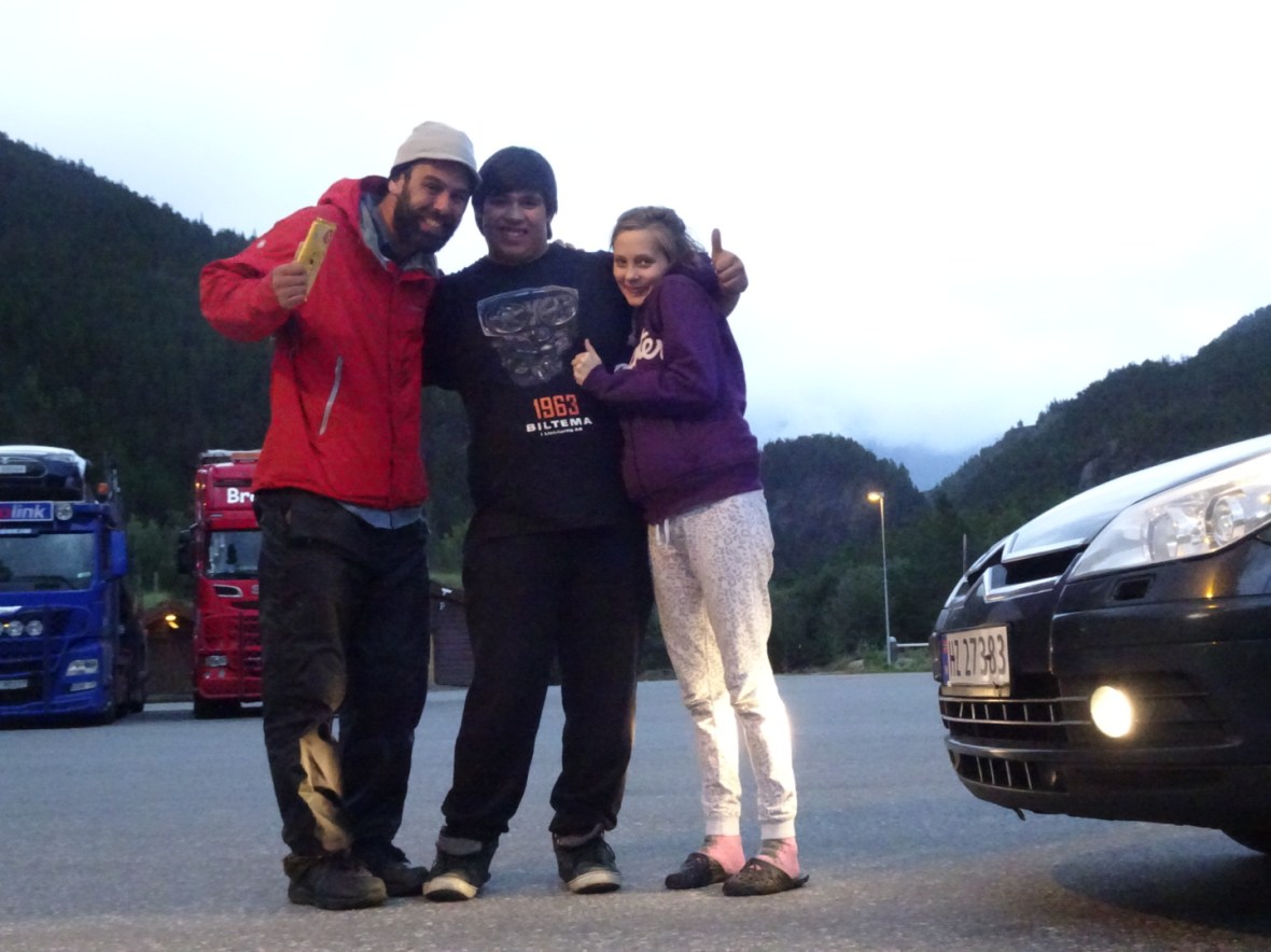 Martin and Henriette are only going a short ways to a store, but I get in anyway, hoping to have better luck there. I stand outside the store for half an hour as the sun drops down and the cars thin to almost nothing, then I hear a horn behind me from the parking lot and turn to see Martin and Henriette waving me over.