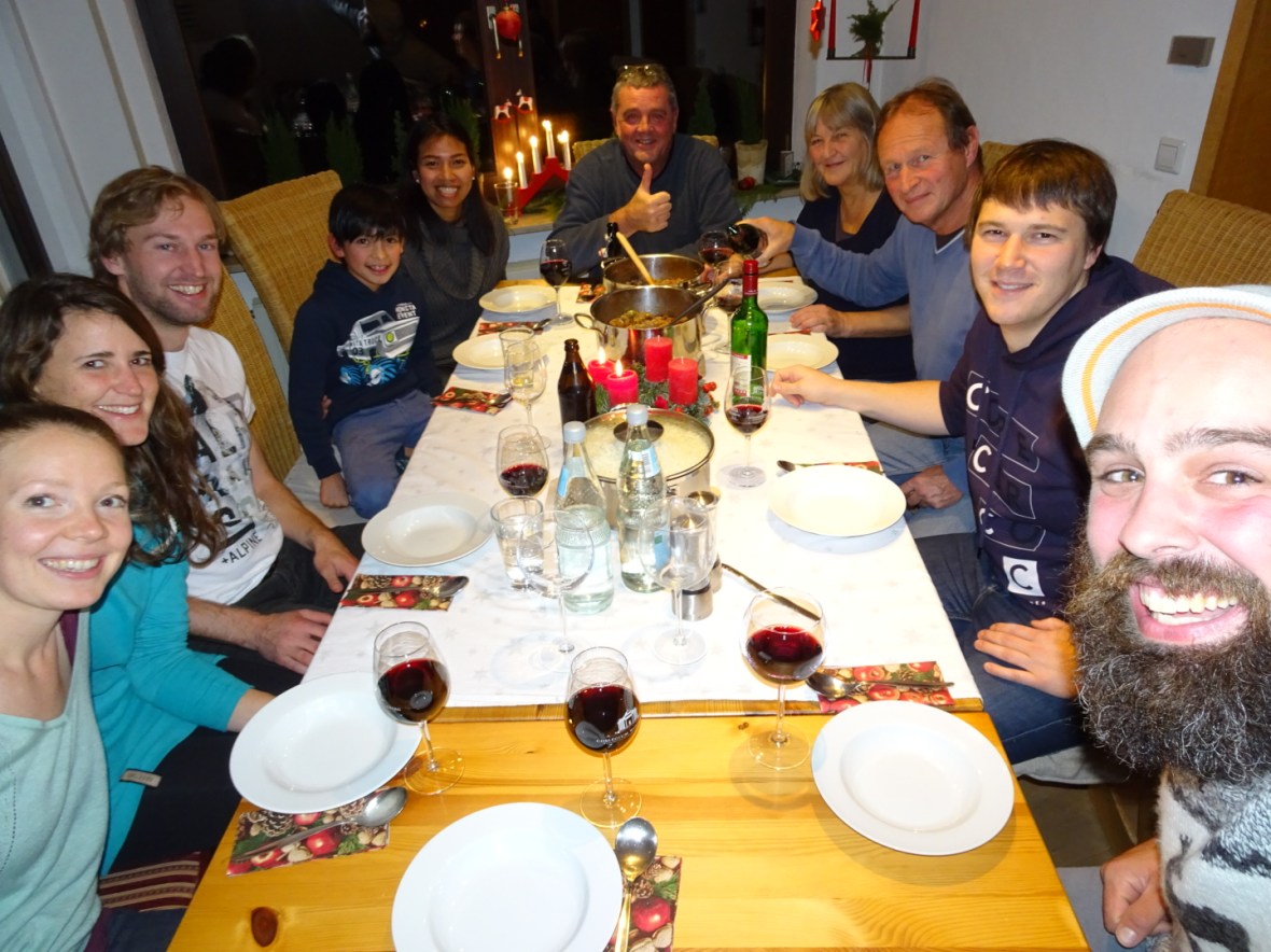 I slumped against the train window and watched the world slide by. I thought of meeting Miriam that first day, the disbelief that I’d actually made to this distant place I’d heard about five months ago. I thought of cooking spätzle with her mom and dad, of drinking glühwein in the winter market with her brother and friends, of fresh pretzels in the morning with the slice across the thick end like the do in Swabia, of hugs and laughter and warmth.