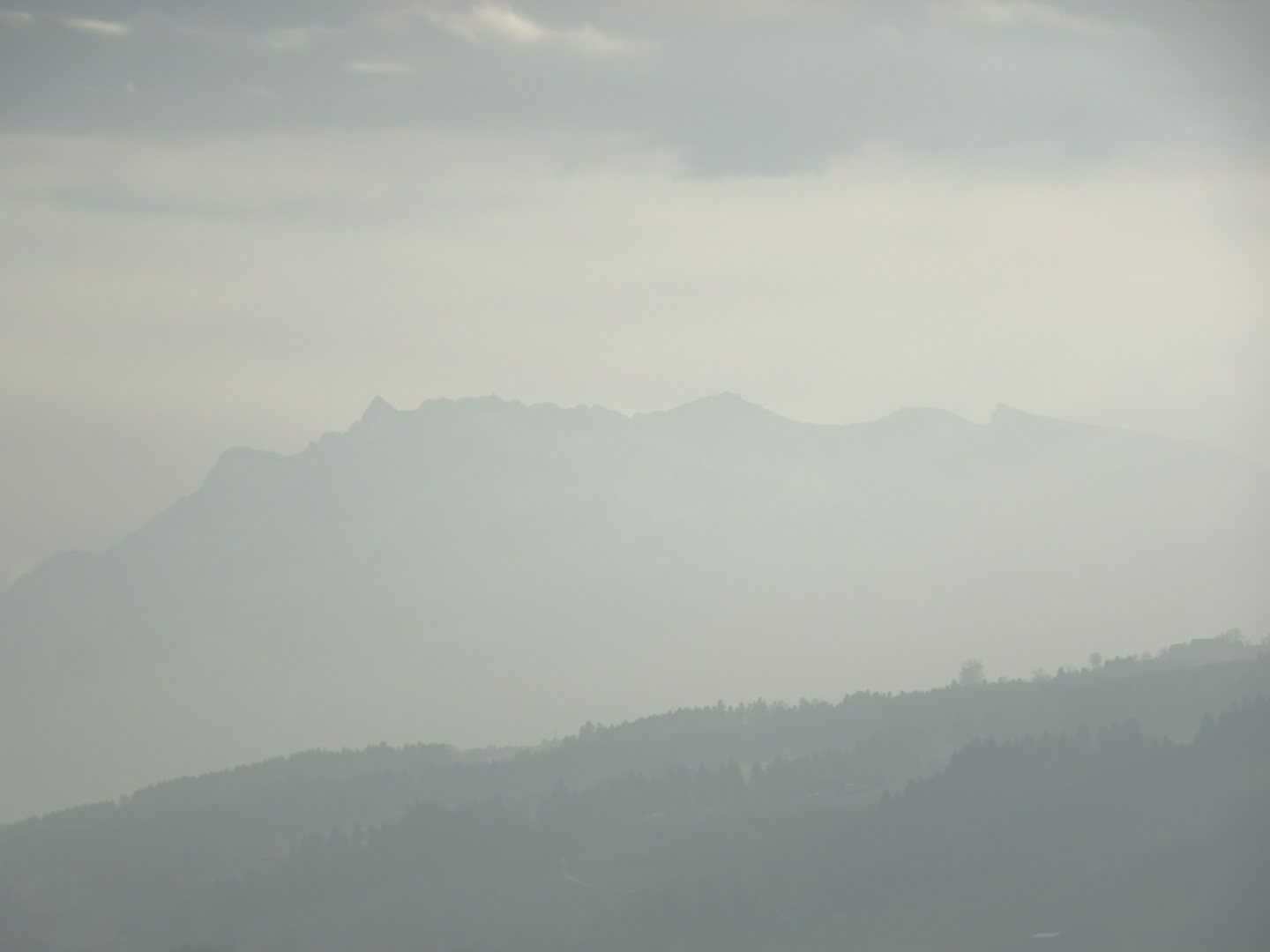 The distsnt mountains emerge out of the fog like giant beasts. I catch glimpses of them in the distance. They are shadows, hints through the mist, bits of slopes and peaks, snow and rock hanging in the sky, appearing and disappearing, fading in and out of existence.