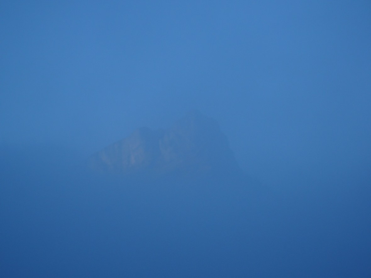 The mountains that existed yesterday disappeared in the night, swallowed up by low clouds that settled in from horizon to horizon. I wake, pack my tent, and walk out into a grey canvas where giants once stood. It feels empty without them. Not even a shadow remains, no dark shapes in the light, no solid edges fading in and out, nothing. It is as if I’d imagined them all, these mountains floating in the distance.