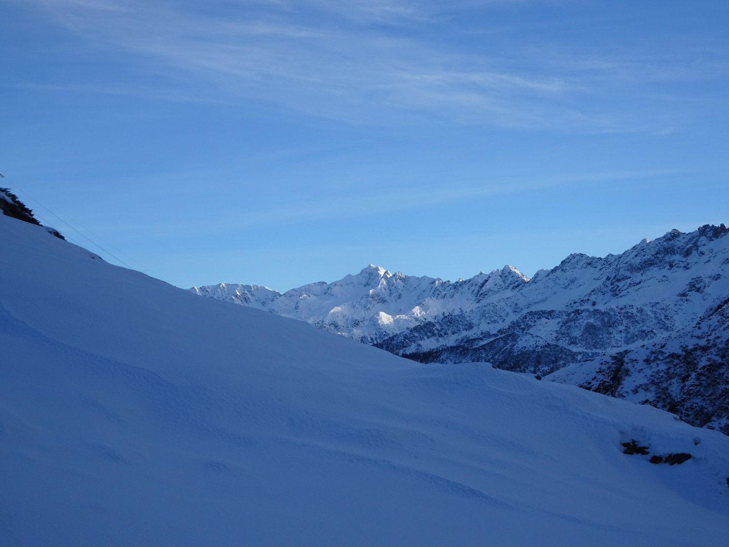 In a hundred yards, there are no more tracks to follow, there is nothing but fresh snow stretching to the pass. We are alone, even from the footprints of ghosts that passed by days ago.