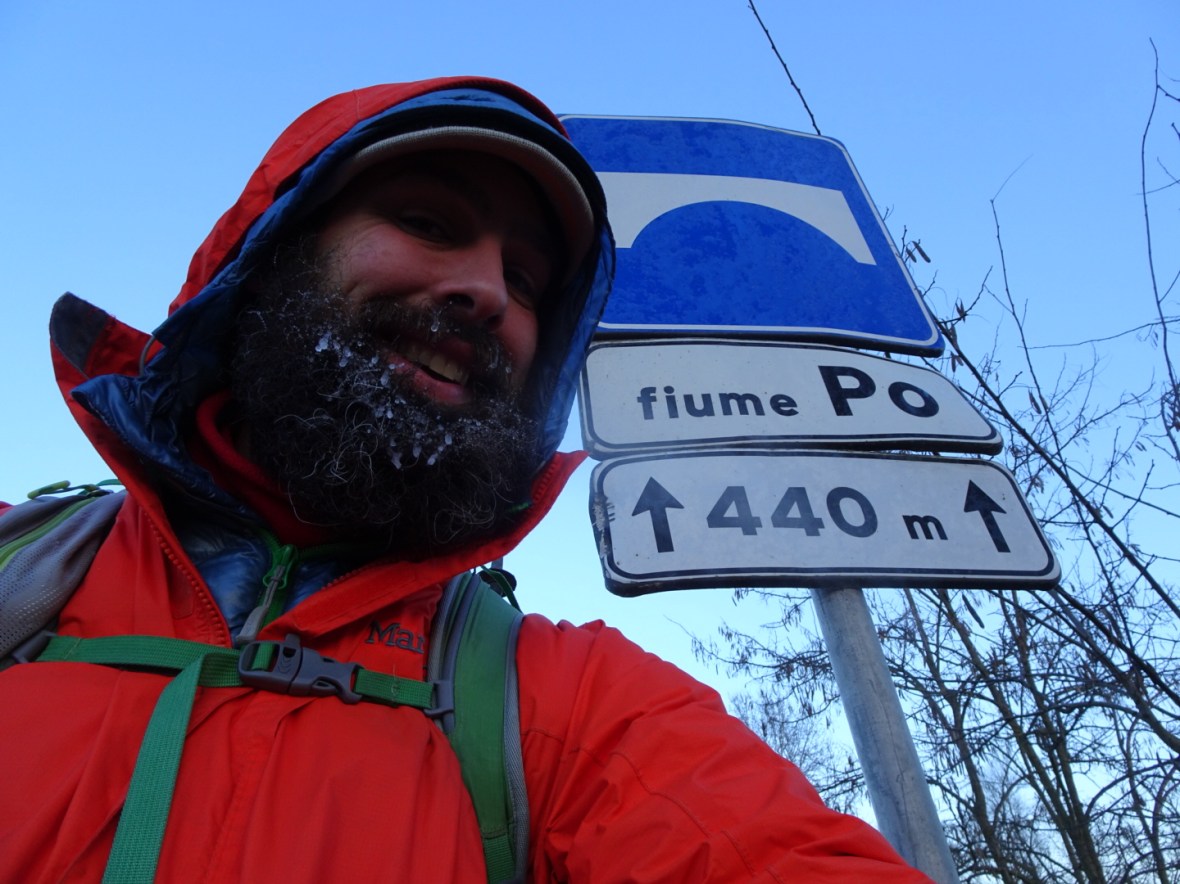 I scramble up to the highway and walk the narrow shoulder of the bridge across the Po. It’s a big river here, but will grow as tributaries to the east feed it all the way to Venice and the sea.