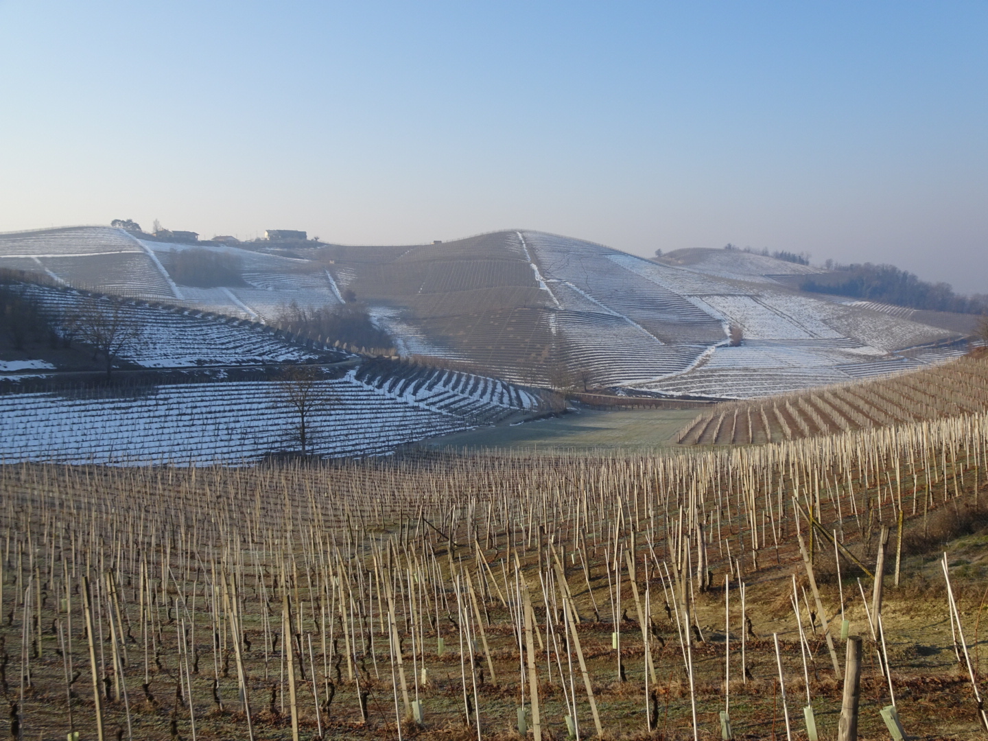 Vineyards stretch across the hillsides in long, parallel lines. Their curves show the contour of the earth as hills rise and sink underneath them. A few forgotten grapes still cling to some vines, their skin withered and frosted with ice, their leaves all but gone. Others are pruned down almost to the ground, clean and crisp, ready to rest until spring coaxes them back to life.