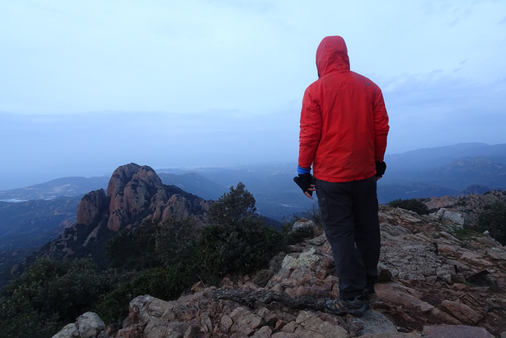 I don’t sleep well. I barely sleep at all. My bag is damp, my clothes are wet, I keep sliding down the slope. But then the sun rises over the Mediterranean and I crawl out to stare, sitting on a perch of rock far above the sea, watching as the first rays streak out to light the red rocks of the mountains, as the clouds transformed to cotton candy pink, as the blue ocean stretches out below.