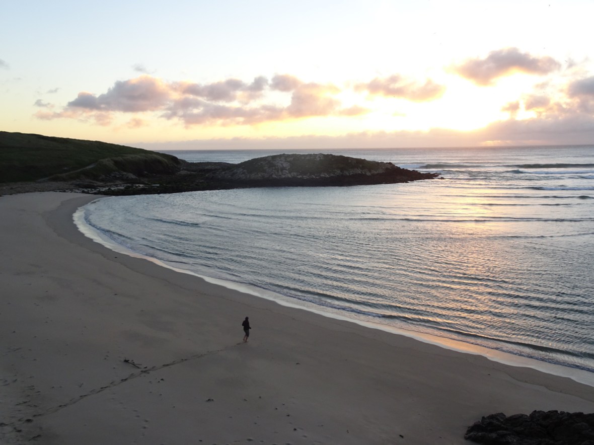 We walk down to the beach for sunset, to watch the sky turn golden as we dip toes in the surf, to dance and play in the sand, to laugh, splash, and soak our feet in the waves. We are alone, just the four of us, no one else stopped in Lires. The call of Finisterre, of the end, was too strong to resist.